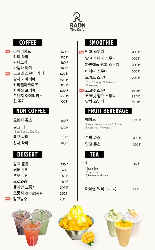 음료 가격 안내